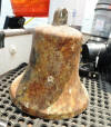 I discovered one of the vessel's wine cellars, or storage compartments. The external pressure had forced most of the corks into the bottles. I retrieved three of these bottles. One of the bottles still had the cork in place; the contents were uncontaminated by seawater. I don't know what kind of wine the bottles contained because the paper labels were gone. But the bottom of each bottle is embossed, "THIS BOTTLE IS MADE IN ITALY."