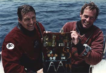 Dave Console dragged me onto the deck and pulled off my tanks and other gear. Then I stretched out flat on my back, groaning in misery: a discomfiting rather than a triumphant return from a momentous dive. I could not bend at the waist or move in any way that did not cause agonizing pain. I had to have my drysuit stripped off me. Then I crawled into the cabin like a wounded cripple. I celebrated the event by swallowing a pain pill.